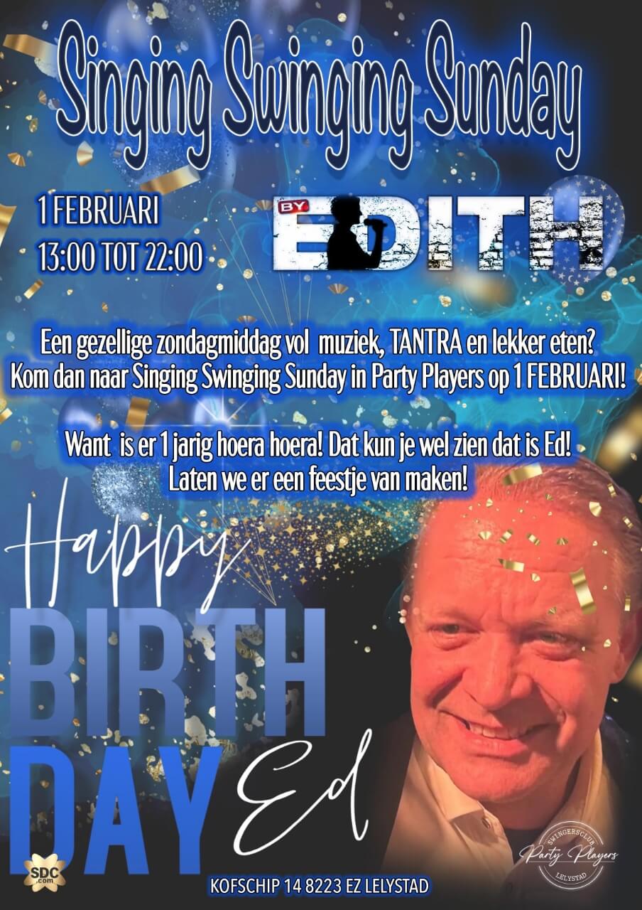 Welkom bij Singing Swinging Sunday by Edith – een heerlijke, zwoele zondagmiddag bij Party Players vol muziek, gezelligheid en verleiding. Laat je meenemen door de betoverende stem van Edith, geniet van lekker eten en een open-minded sfeer waar ontspanning en erotiek samenkomen.